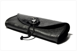 Pelle lavorata ad effetto coccodrillo sulla patta. Fodera in tessuto floccato. Il prodotto viene confezionato con un elegante sacchetto in doppio floccato. Una bella confezione!